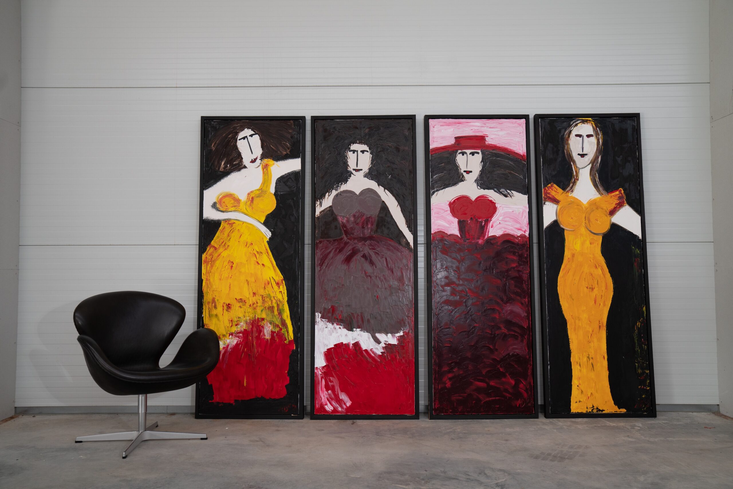 Dansende kvinde med et imødekommende smil, der virkelig betager. Kvinderne klæder hinanden parvis og ja, så er det op til dig at sammensætte dine faviritter.